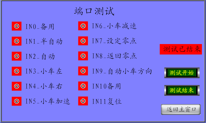 “端口測試”界面是為了測試運動控制器所外接的按鈕,旋鈕等開關量是否連接良好,以及連接是否正確。
