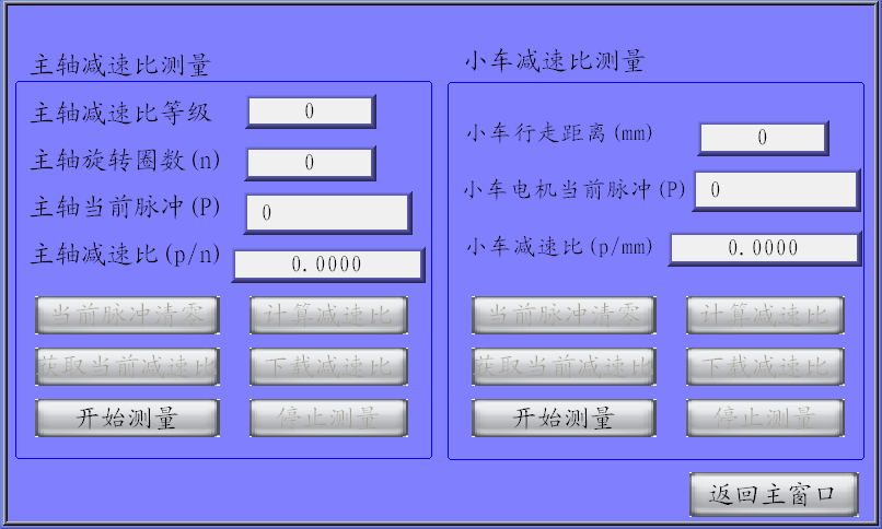 7)?為了使計算結果精確可以重復3)--6)步,人工將計算出的減速比求平均值,然后輸入到“主軸減速比”文本框中。此步可跳過;